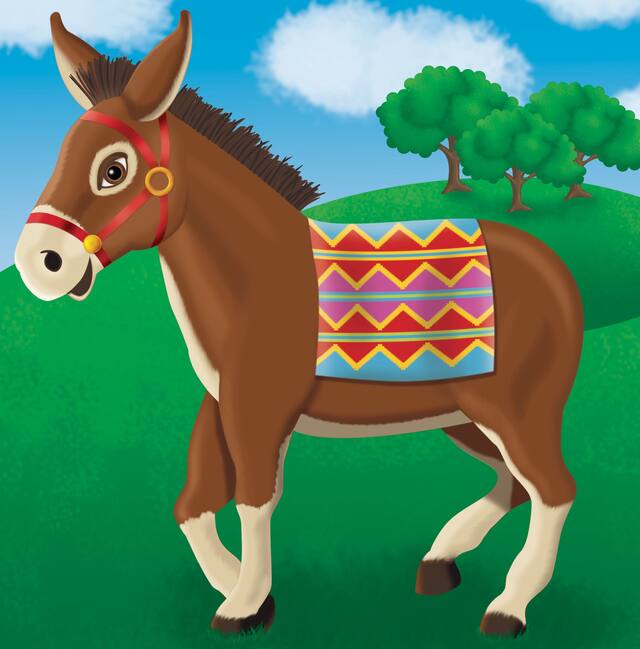 Includes donkey cutout, plastic mat, 10 Numbered self-adhesive tails: 4" x 1", and cardstock blindfold