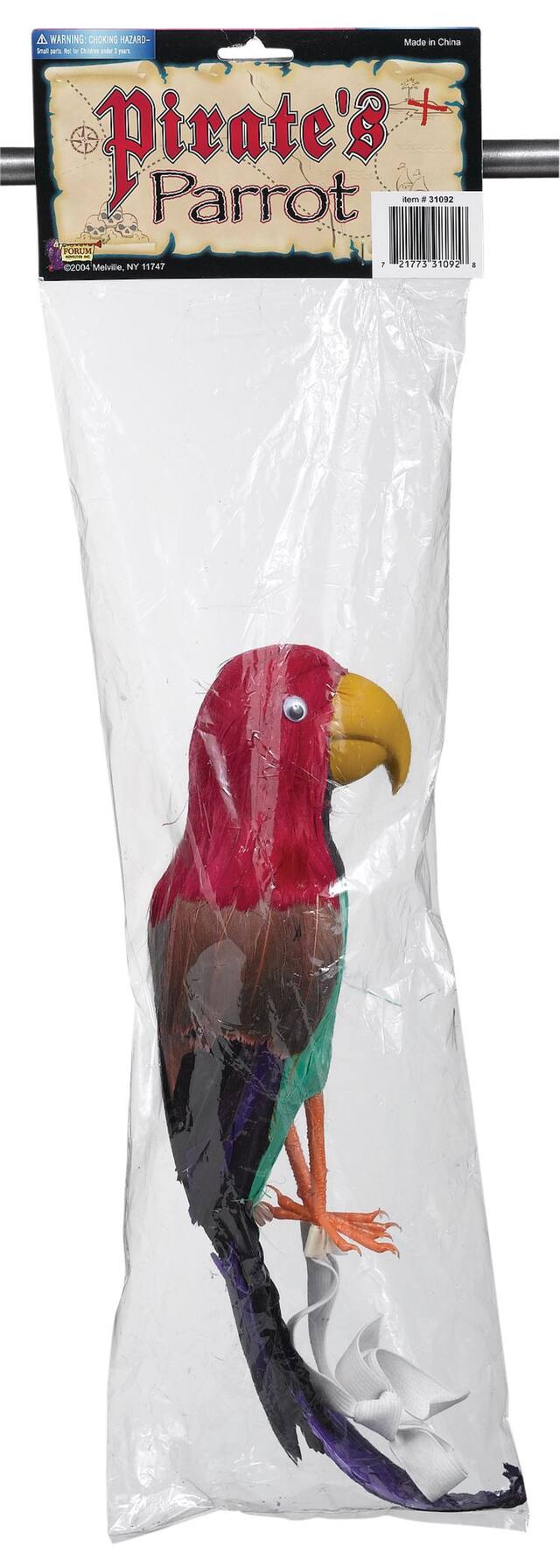 Polly's in fer a treat with ye as her captain! Featuring bright red and blue feathers with a black beak, yellow underbelly and long curling tail feathers, our Pirate Parrot makes the perfect companion to scurvy seafarers far and wide. This classic pirate costume accessory rests on top of a single black shoulder strap with hook-and-loop closure and a square sticky tab underneath its feet for secure placement.