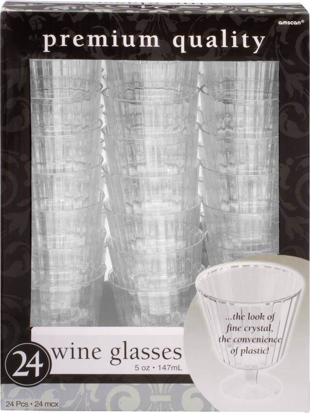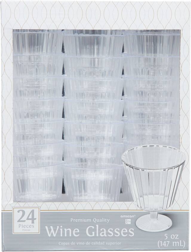 Plastic Wine Glasses, Birthdays, Showers, More, Clear, 5-oz 24-pk