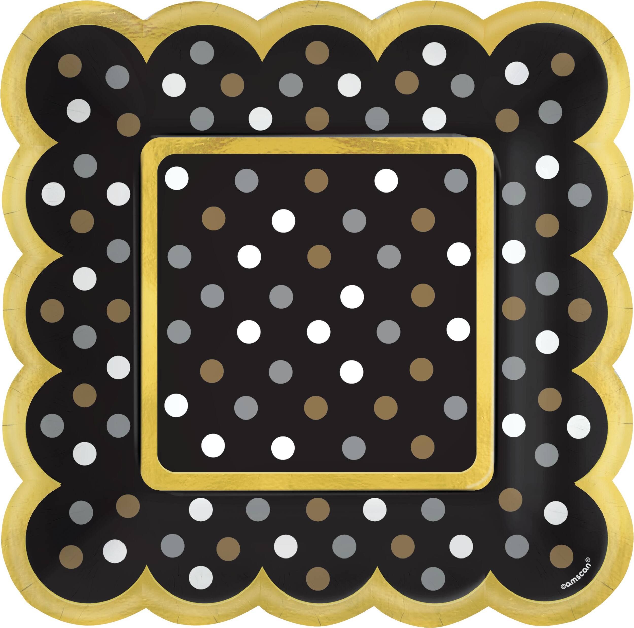 You may be interested in these similar products shown below.Polka Dot Scalloped Appetizer Plates feature metallic gold scalloped edges with a black, gold, and white polka dot design