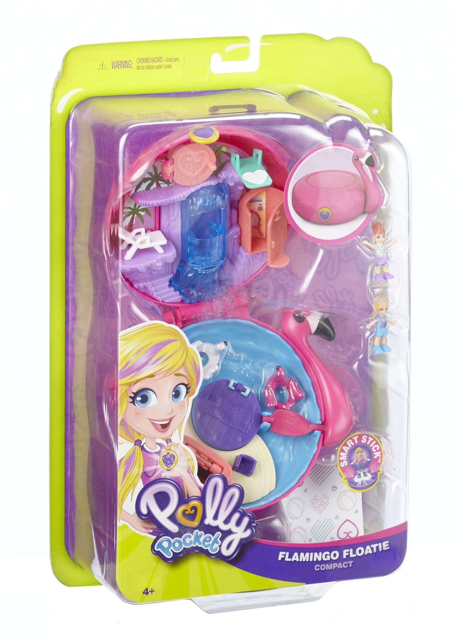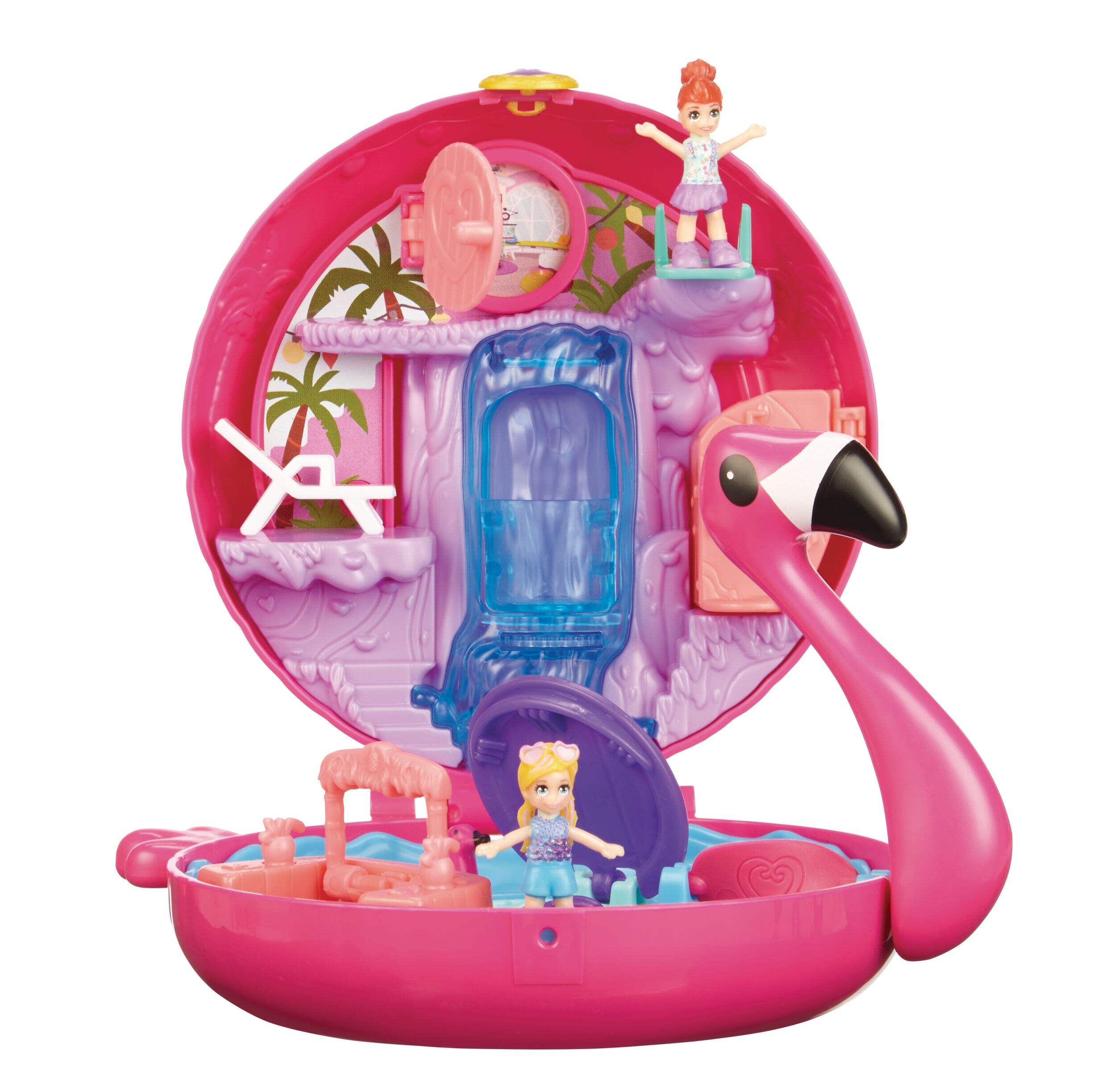 Choose from Polly Pocket™ Sweet Treat, Flamingo Floatie, and Snowball Surprise themes for diverse play options