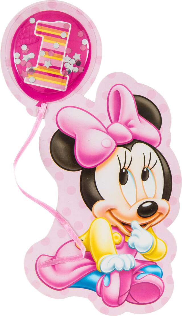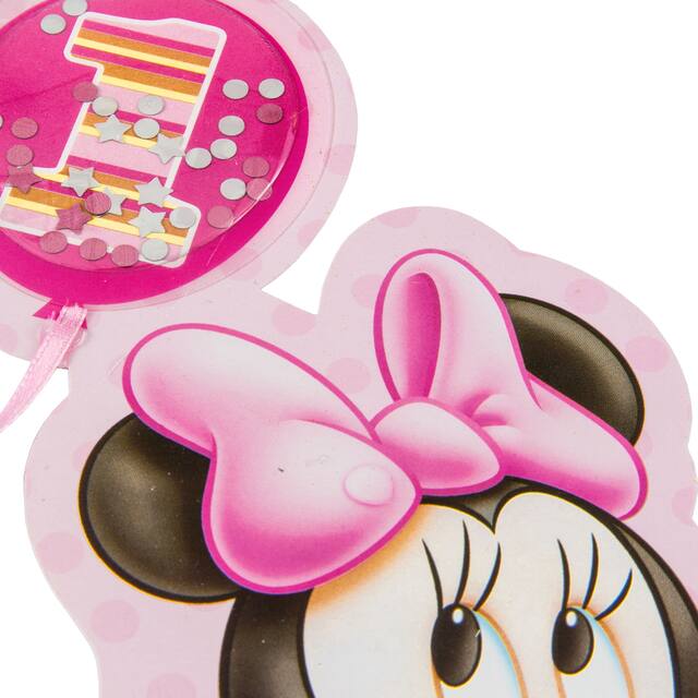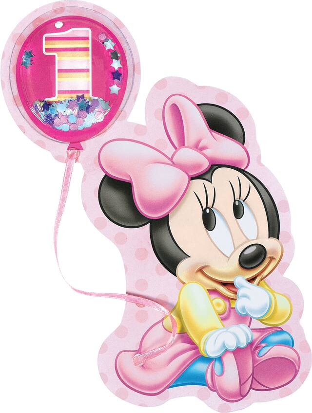 You may be interested in these similar products shown below.Premium 3D 1st Birthday Minnie Mouse Invitations feature a baby Minnie holding a pink satin ribbon with a number 1 balloon