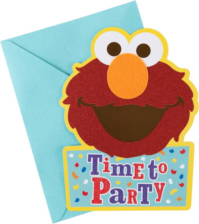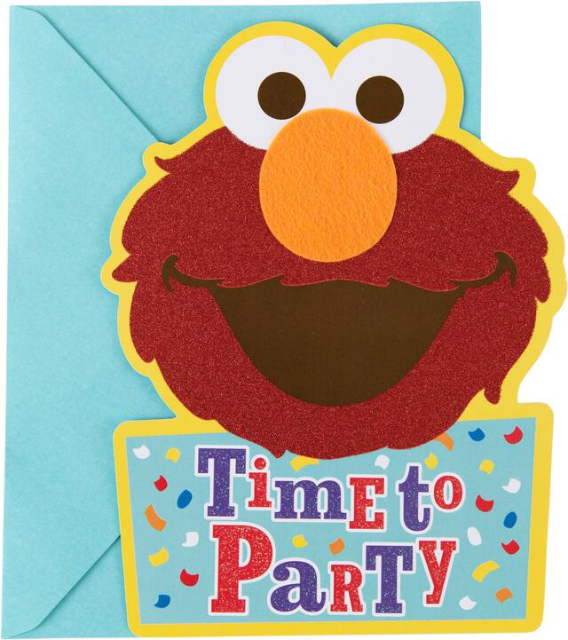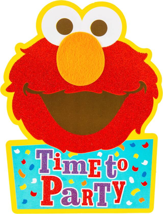 You may be interested in these similar products shown below.Premium Glitter Elmo Invitations feature a full face of red glitter and a fuzzy orange felt nose on the front of each sturdy cardstock postcard-style invitation
