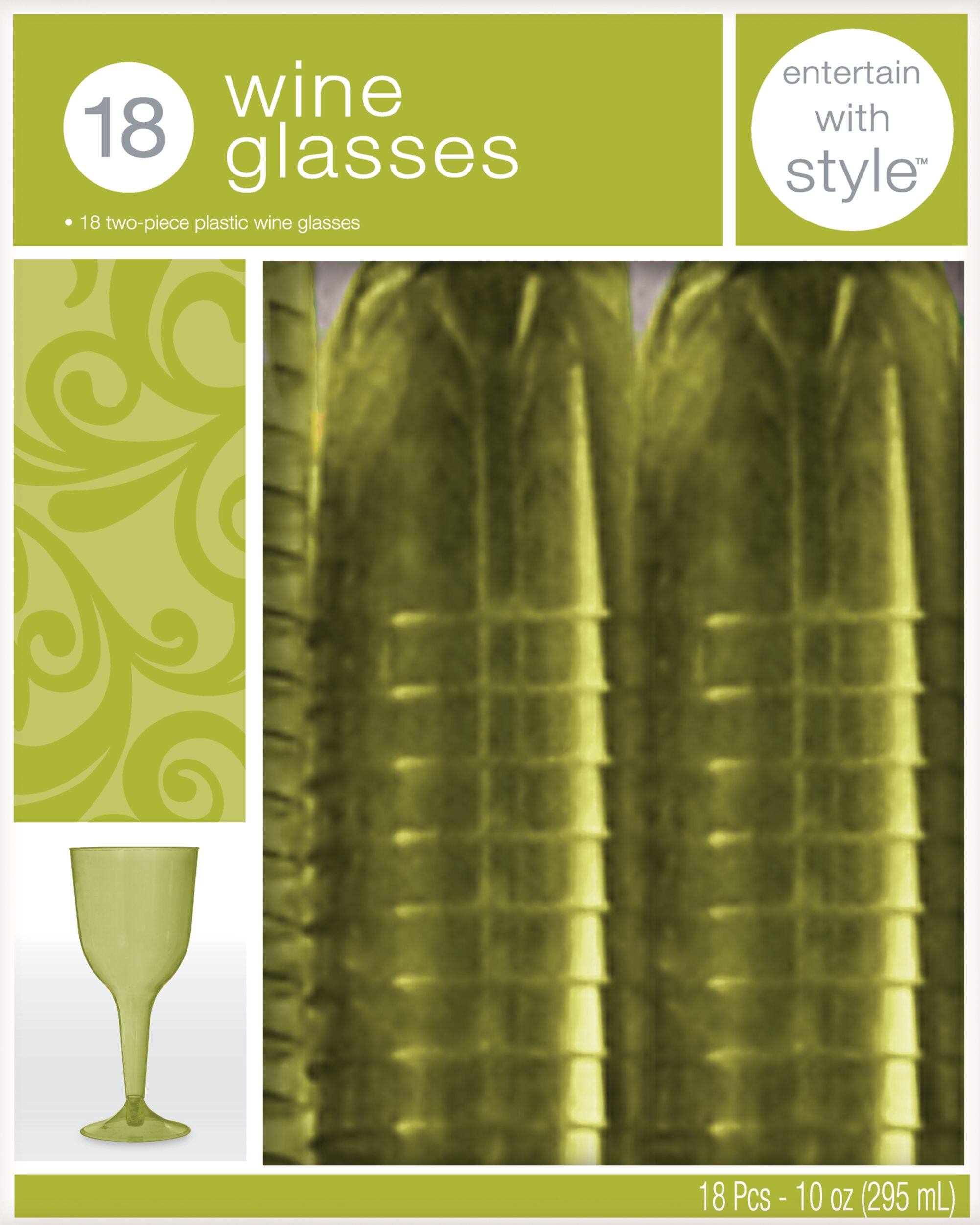 Premium Plastic Avocado Wine Glasses, 18-pk