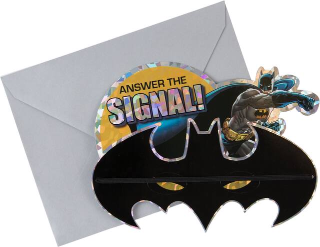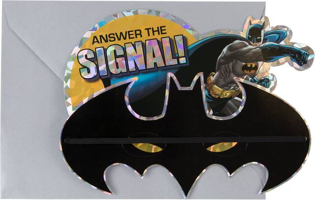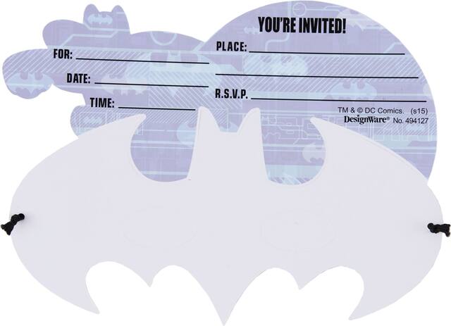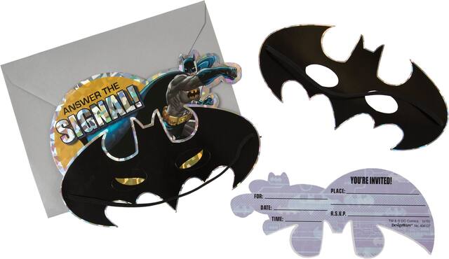 You may be interested in these similar products shown below.Premium Prismatic Batman Invitations are invitations that also give your guests something to wear to the party