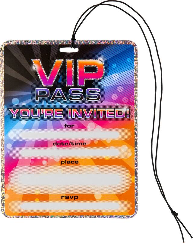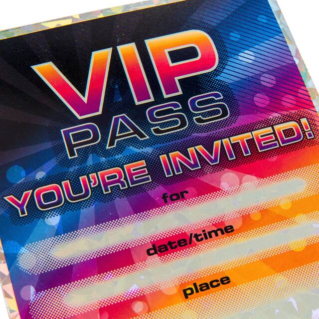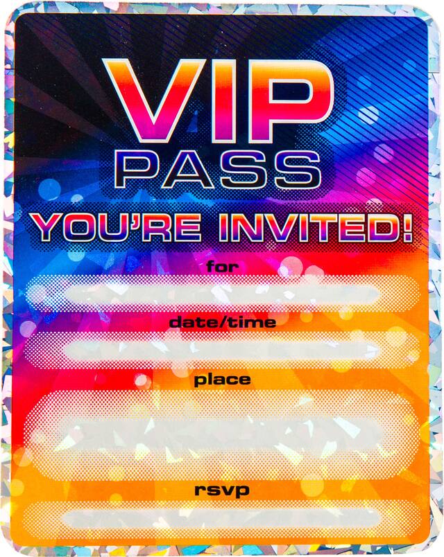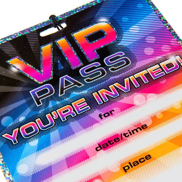 You may be interested in these similar products shown below.Premium Prismatic VIP Pass Invitations are single-sided cards with a flashy, colourful background of sparkling lights
