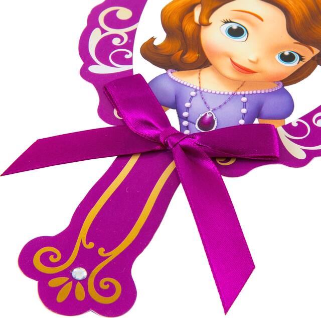 You may be interested in these similar products shown below.Premium Sofia the First Invitations feature a hand mirror-like shape with Sofia and a real purple satin bow