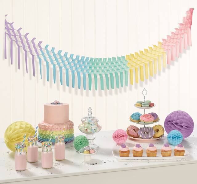 You may be interested in these similar products shown below.Pretty Pastels Iridescent Tassel Garland decorates your party space in pretty pastel style