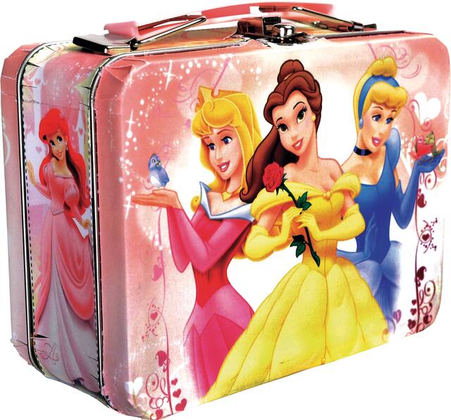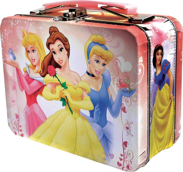 You may be interested in these similar products shown below.Princess Tin Box is a two-sided lunch box featuring Disney princesses against a pink background with a "Never Stop Dreaming" headline