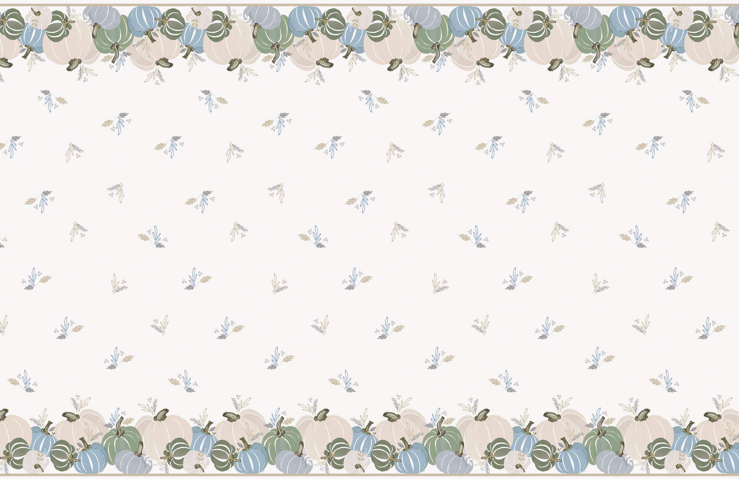 • Rectangular table cloth featuring a border of green, blue and cream pumpkins on a cream background