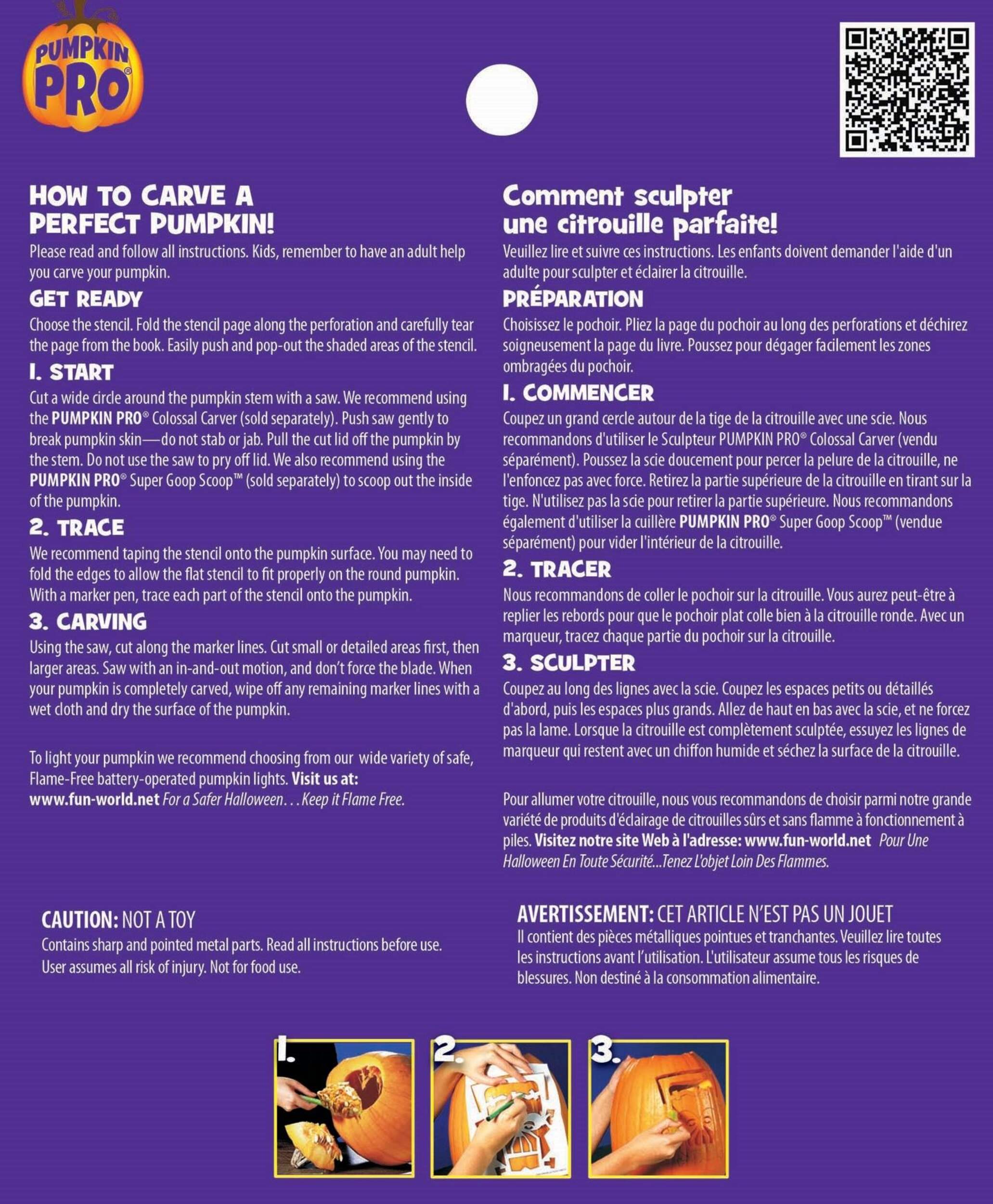 The Ultimate Stencil Book by Pumpkin Pro provides everything you need for creative pumpkin carving. This 10-inch white book contains 10 pop-out stencils with fun Halloween themes, along with carving tools to easily cut intricate designs. This all-in-one stencil kit makes pumpkin carving and decorating easy and fun for Halloween.