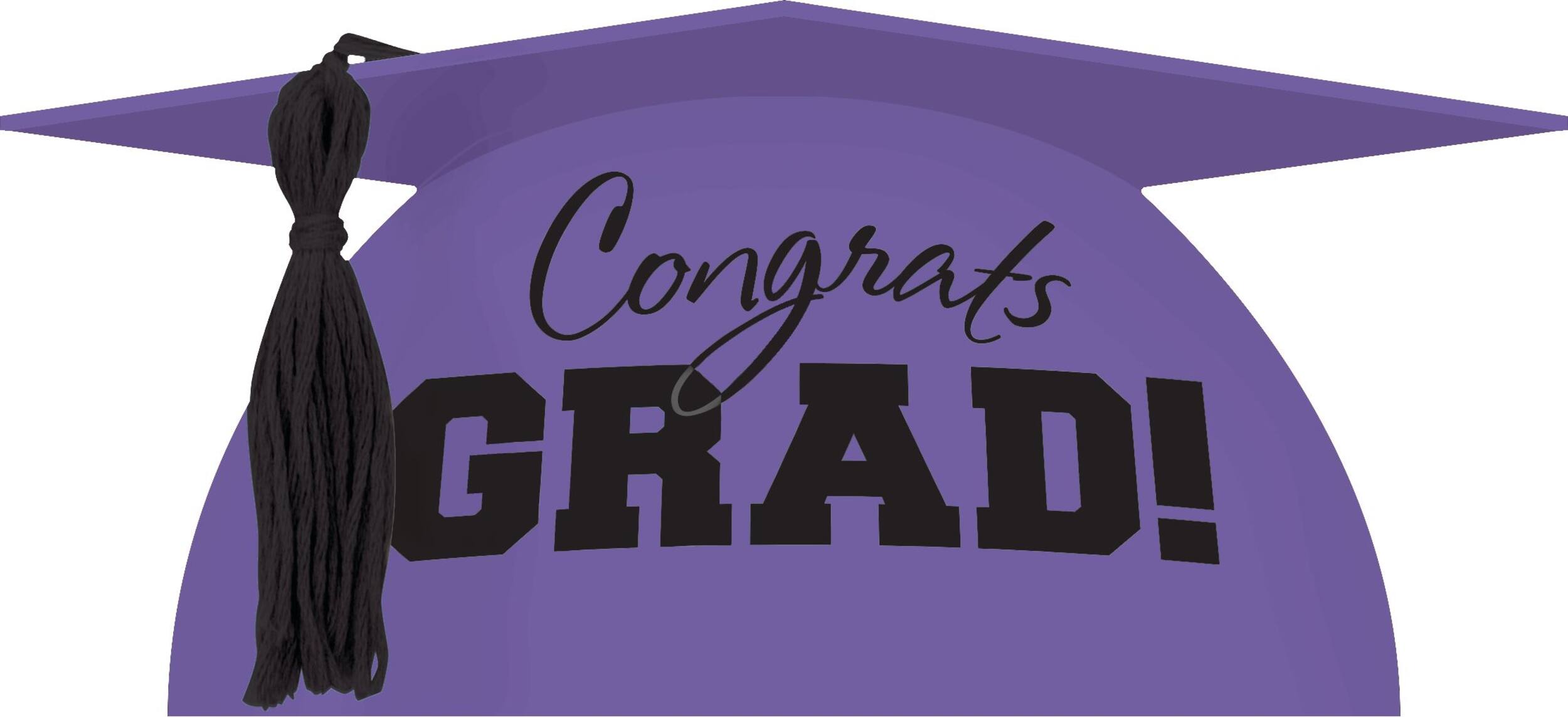 Shaped like a mortarboard and features an attached black tassel and the headline "Congrats Grad!"
