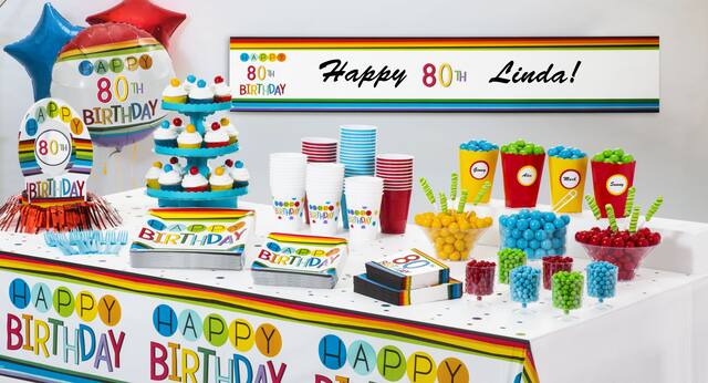 You may be interested in these similar products shown below.Rainbow 80th Birthday Beverage Napkins come with a fun rainbow stripe border and a "80th Birthday" headline in rainbow colours