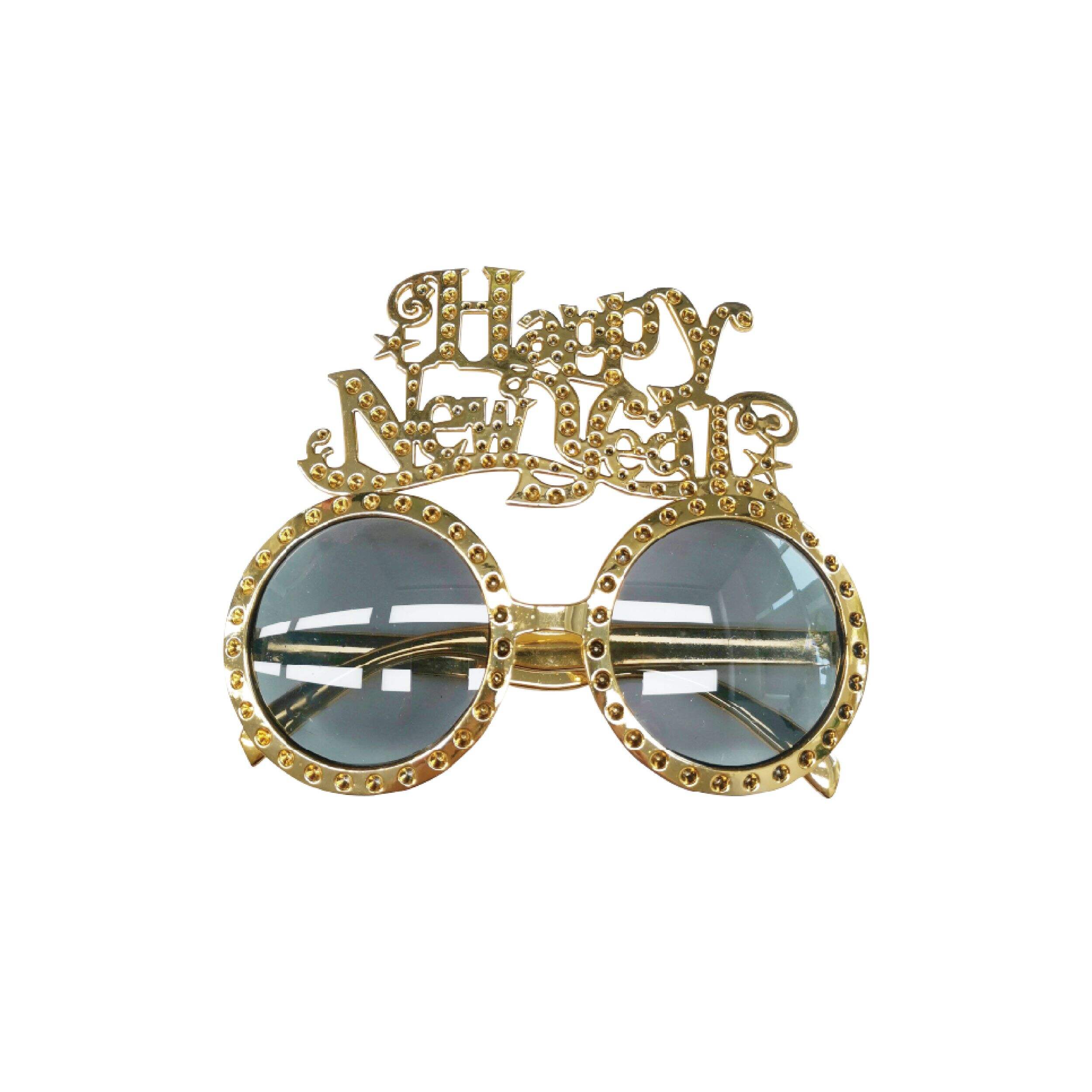 Classic round lenses meet flowing, fancy “Happy New Year” letters in shimmering gold