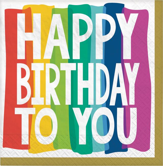 You may be interested in these similar products shown below.Rainbow Wish Lunch Napkin features a bold gold border and a Happy Birthday To You headline printed onto a rainbow stripe background