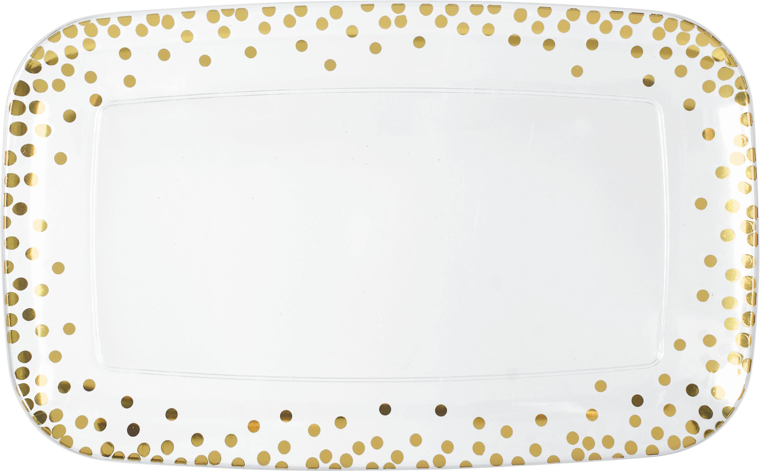 Metallic Polka Dots Plastic Rectangular Platter features metallic gold dots along the border