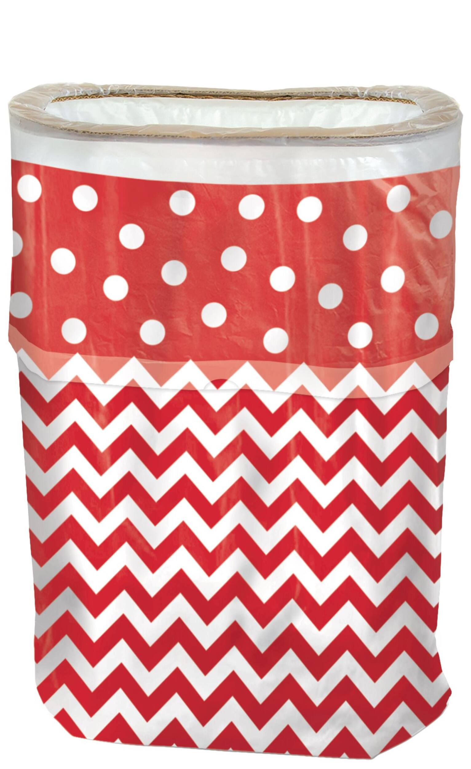 You may be interested in these similar products shown below.Red Polka Dot and Chevron Pop-Up Trash Bin comes with a red and white chevron and polka dot print