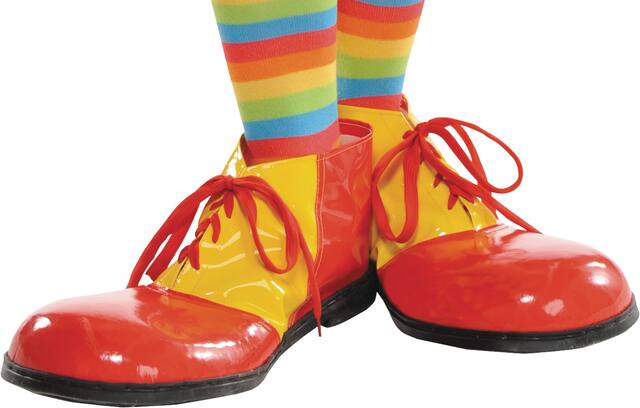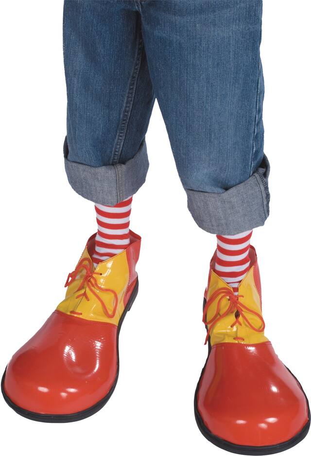 Finish off your clown costume with these Deluxe Red & Yellow Clown Shoes