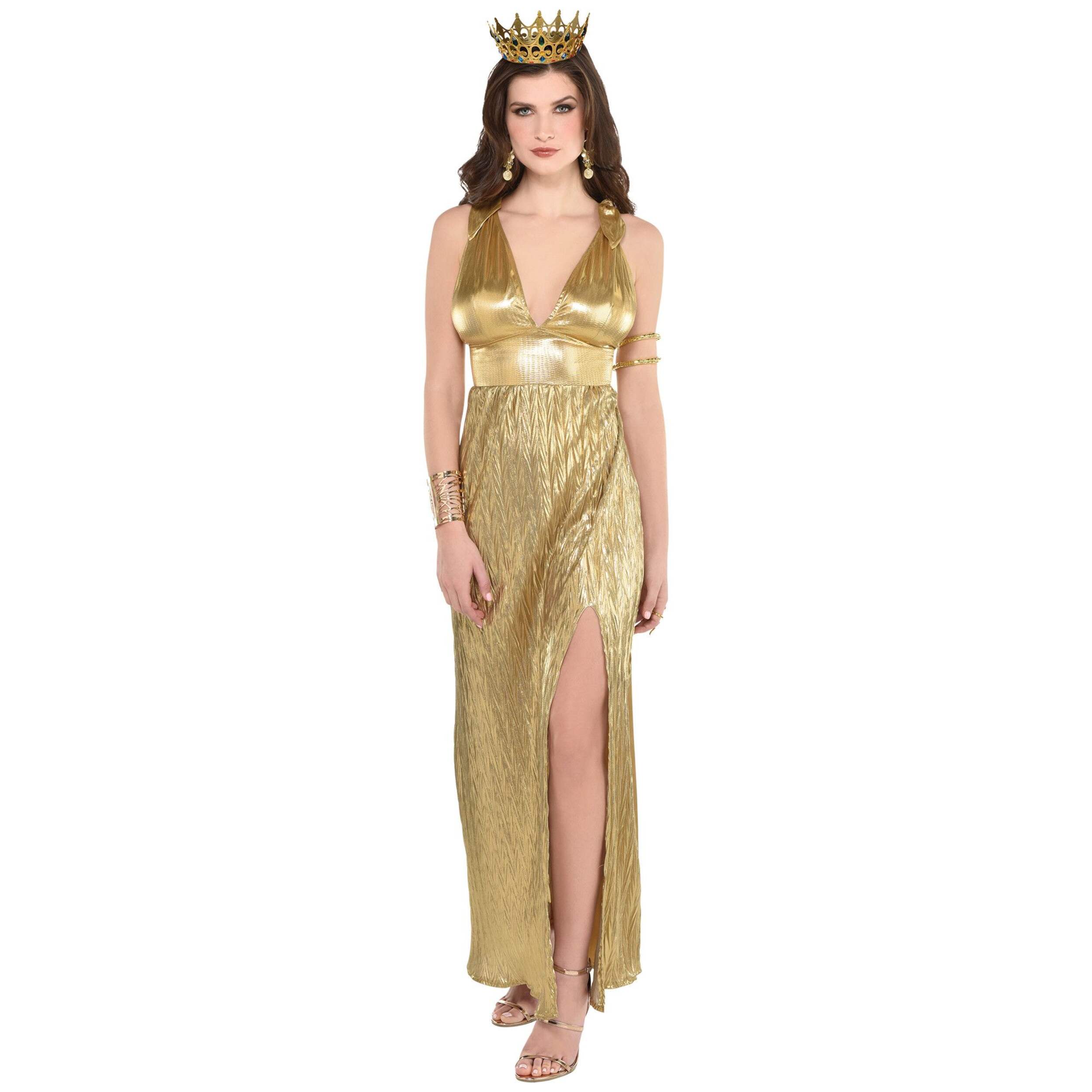 Transform into royalty this Halloween with the Regal Queen Bejeweled Crown Tiara. This elegant gold crown, adorned with vibrant jewel accents, adds a touch of majesty to any queen costume. Perfect for creating a regal look, this royal crown is both lightweight and comfortable for all-night wear.