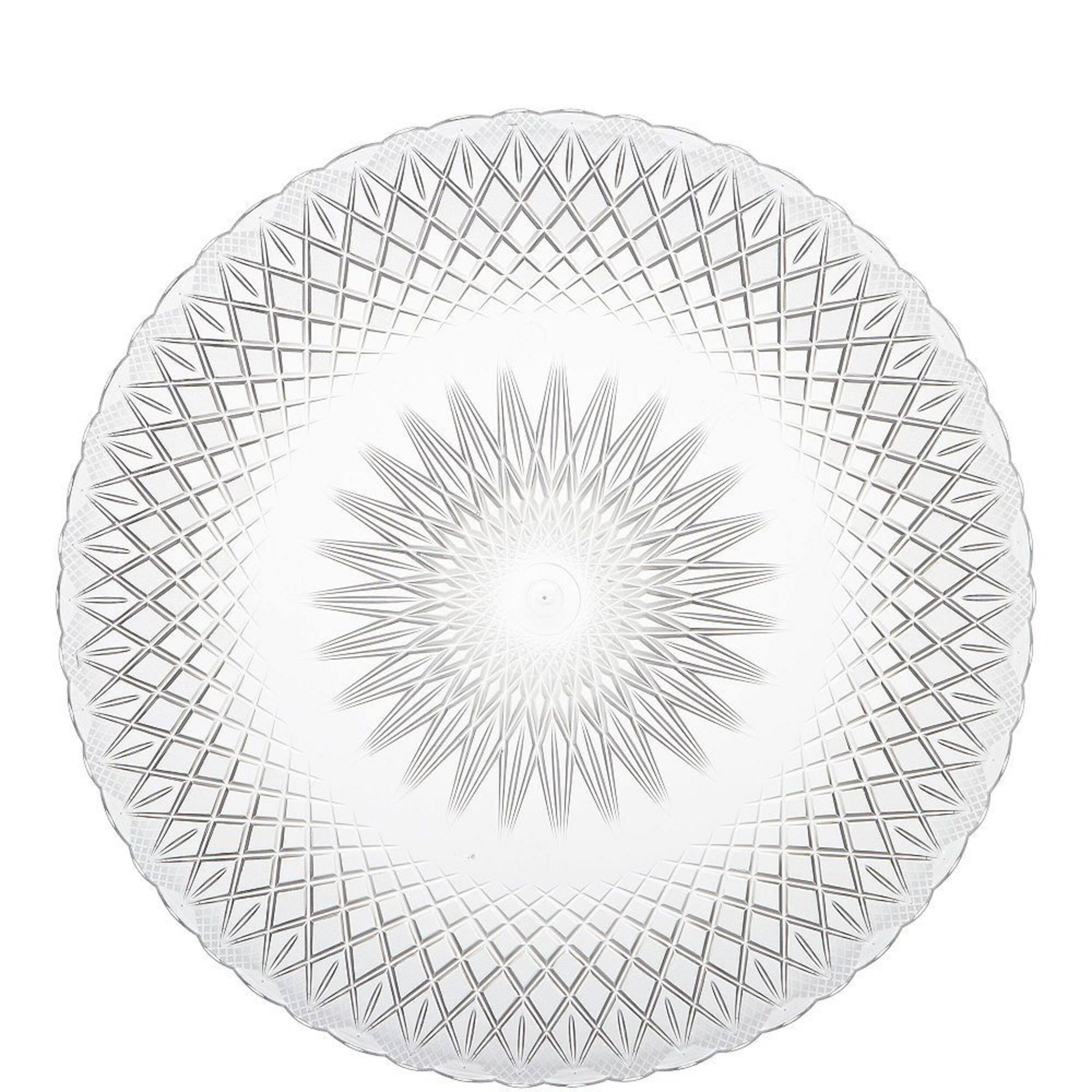 Round Crystal-Cut Plastic Reusable Serving Tray, Clear, 14-in, for Christmas/Thanksgiving/New Year's Eve/Easter/Birthday Party