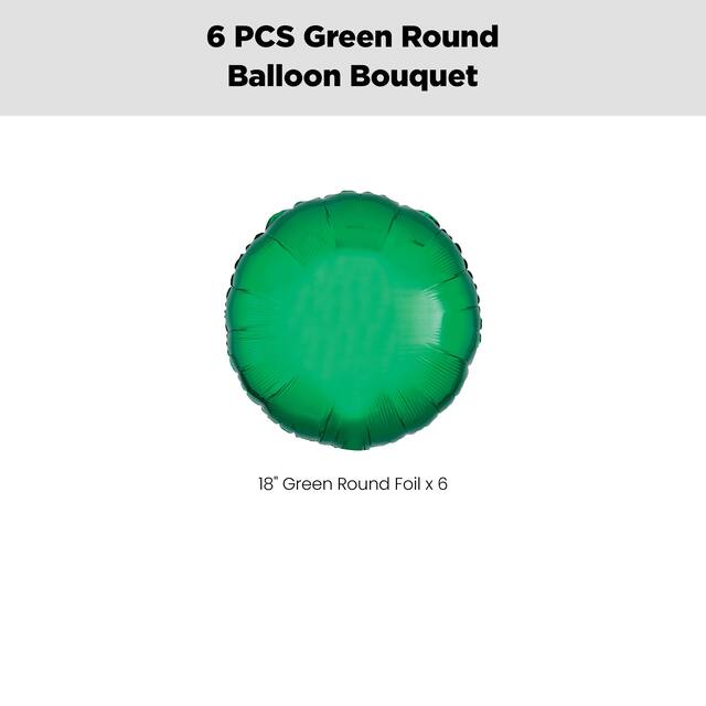 This kit includes: 6 18" Green Round Foil Balloons (SKU 8431999)