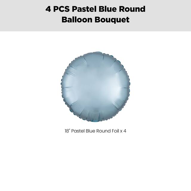 Add charm to any party with this Round Foil Balloon Bouquet in pastel blue. Featuring a cluster of 18” round foil balloons, this 4-piece bouquet spreads joy at parties, anniversaries and milestone events.