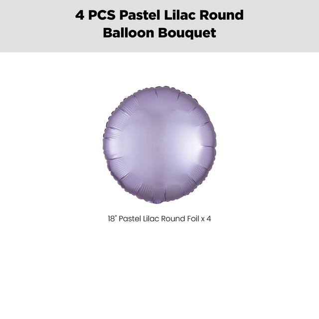 This kit includes: 4 18" Pastel Lilac Round Foil Balloons (SKU 8546671)