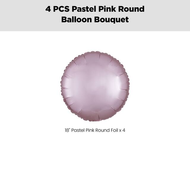 Decorate your party space with this Round Foil Balloon Bouquet in pastel pink. Featuring a cluster of 18” round foil balloons, this 4-piece bouquet is designed to add that picture-perfect finish to your décor.