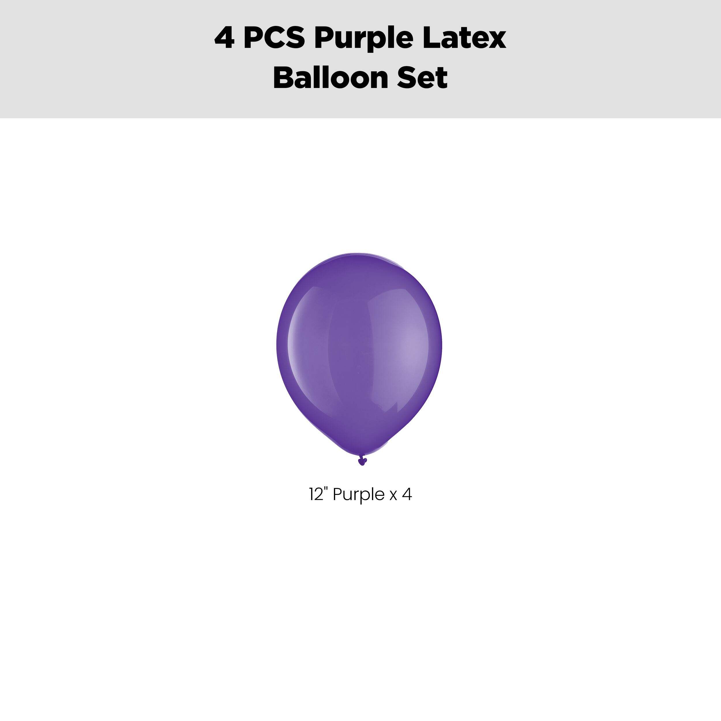 This kit includes: 4 12" Purple Latex Balloons (SKU 8421411)