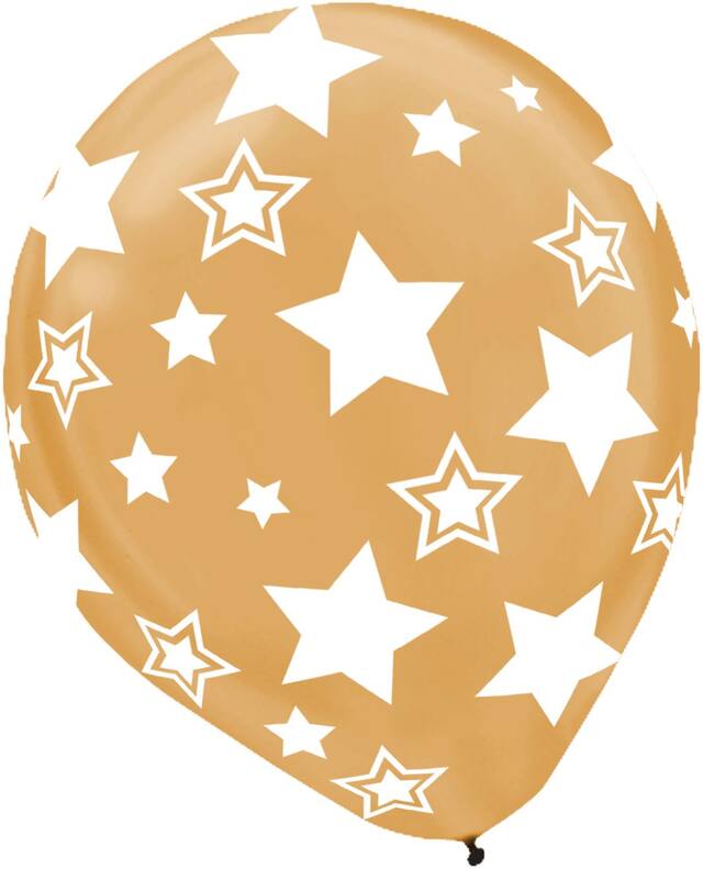 You may be interested in these similar products shown below.Metallic star balloons are a must for festive events. This pack contains 20 latex balloons printed with white all over star designs. The colors include black, gold and silver, perfect for adding instant sparkle to any party or celebration. Measuring 12 inches, these balloons will catch the eye from across the room while decorating tables, entrances or hanging in clusters from the ceiling. Pick up a pack for your next gathering; your guests are sure to comment on the chic yet playful details these metallic star balloons bring to the party.