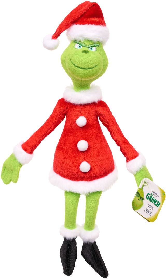 • Features a plastic Grinch mask with an attached Santa hat and a plush band to comfortably secure the mask