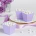 With a light purple exterior, white interior, and scalloped edges at the top, these small cardstock boxes are the perfect size for packing small treats for your party guests