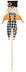 Wood yard stake is topped with a friendly scarecrow in checked overalls, a blue bow tie, and orange accents