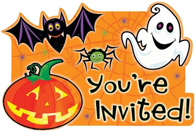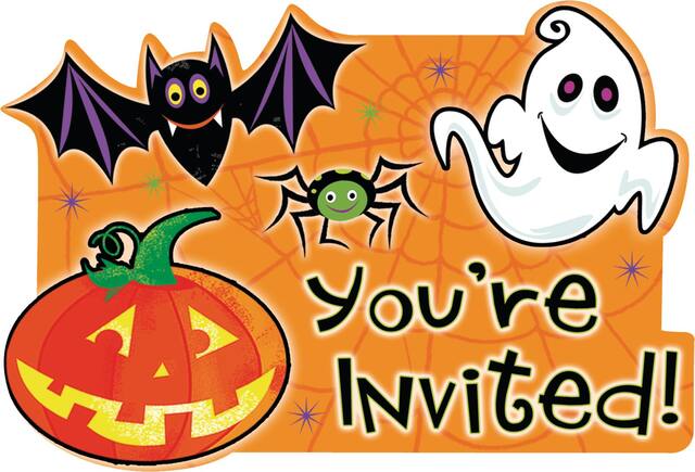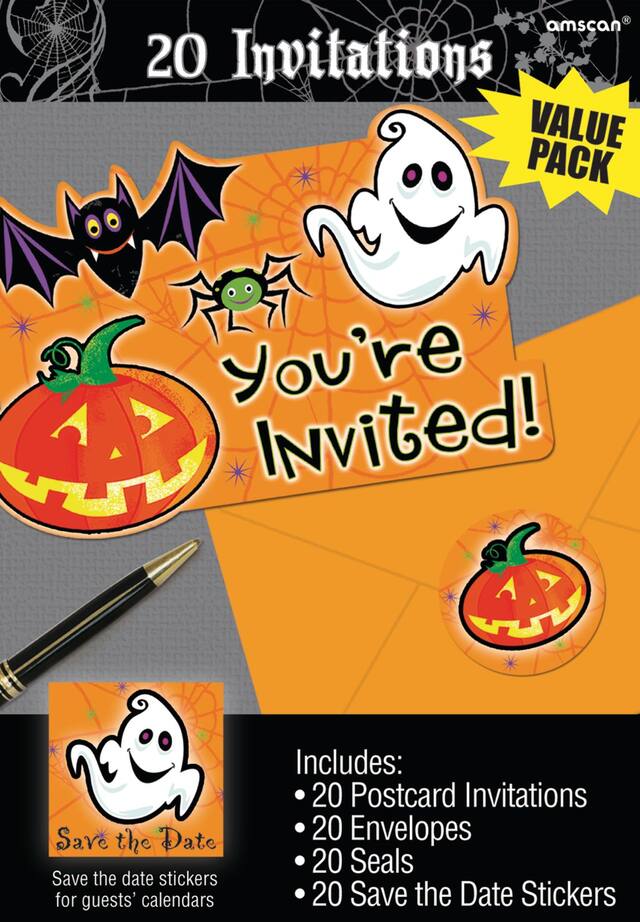 These die-cut cards feature cute Halloween characters and a welcoming "You're invited" headline