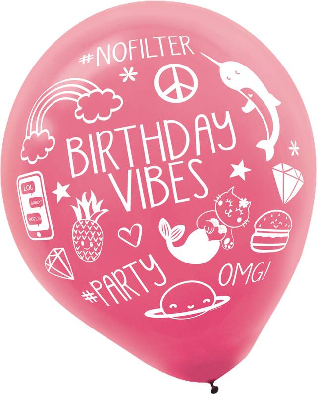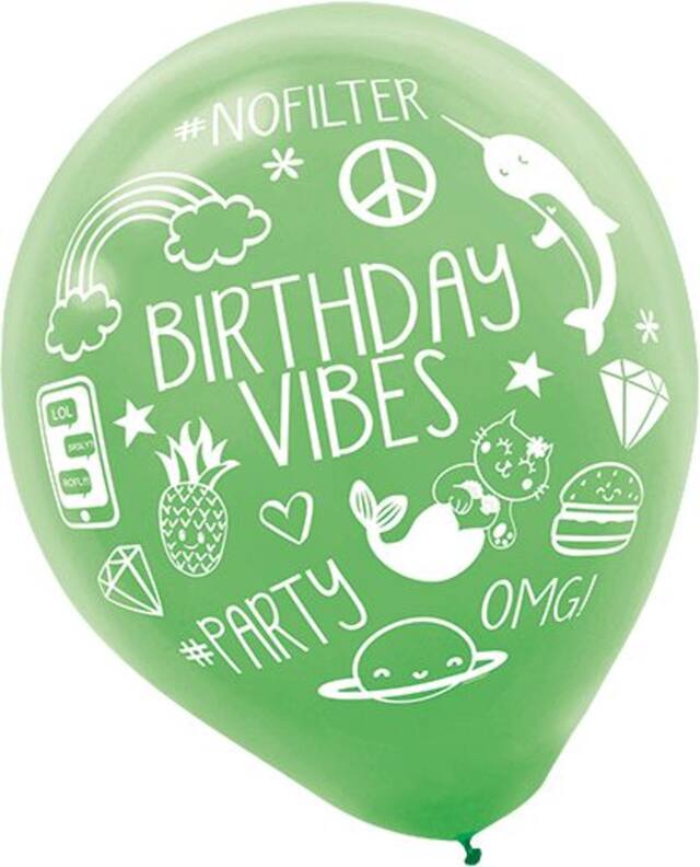 Selfie Celebration Birthday Latex Balloons, Blue/Green/Pink, 6-pk