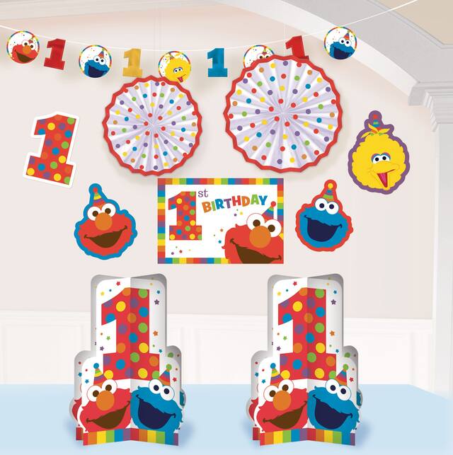 You may be interested in these similar products shown below.Sesame Street Elmo 1st Birthday Room Decorating Kit contains everything you need to set the scene for a memorable first birthday party