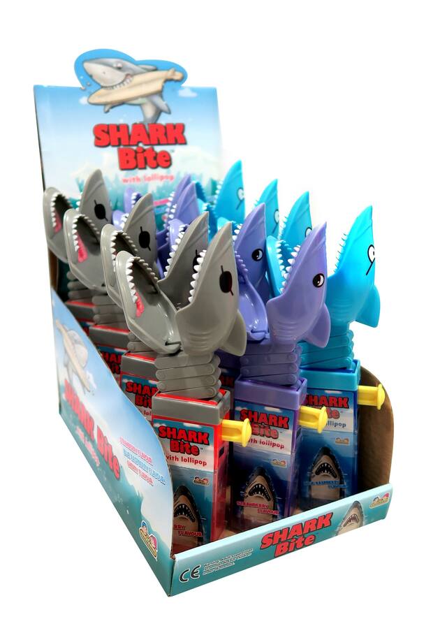 You're gonna need a bigger boat to handle the Shark Bite Lollipop. This fun treat is housed in a collectible shark-shaped dispenser that adds excitement to any event. With the push of a button, you can watch the shark chomp down to reveal a tasty lollipop in one of three assorted fruity flavours.