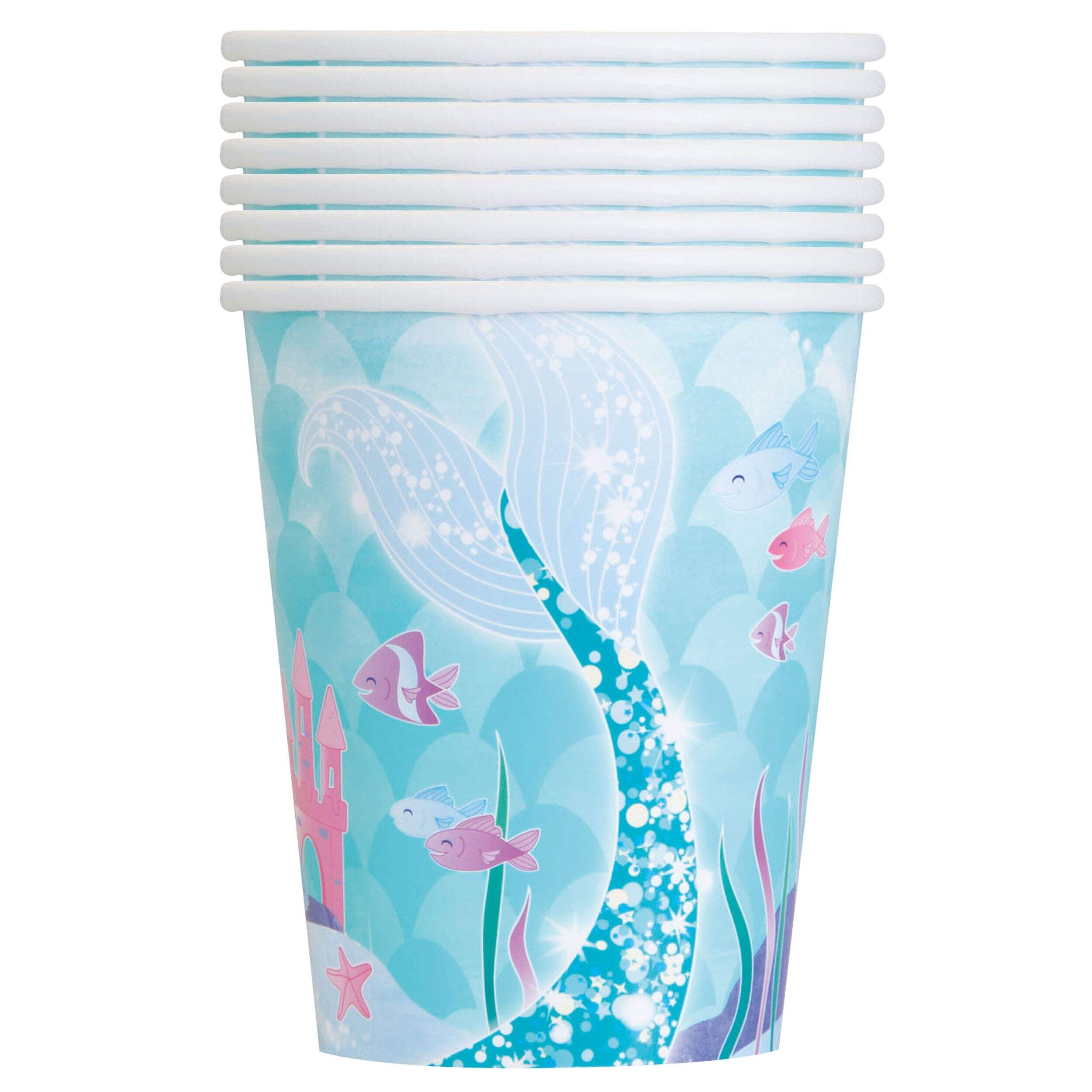 Keep little mermaids refreshed for underwater adventures with the Shimmering Mermaids Paper Cups