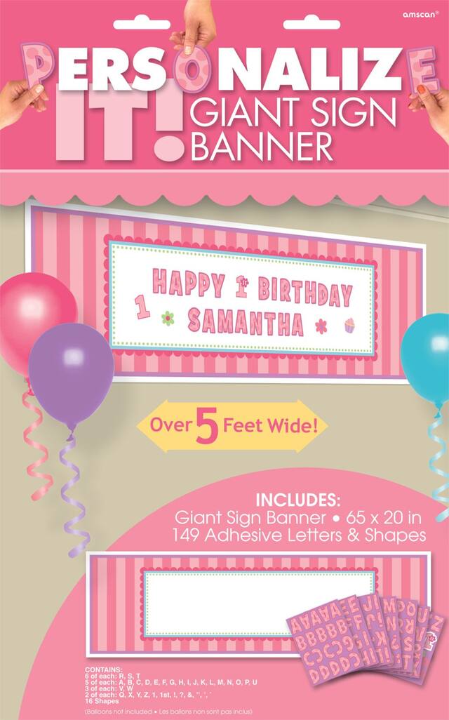 Sign Banner 1st Birthday Girl, 65-in x 20-in