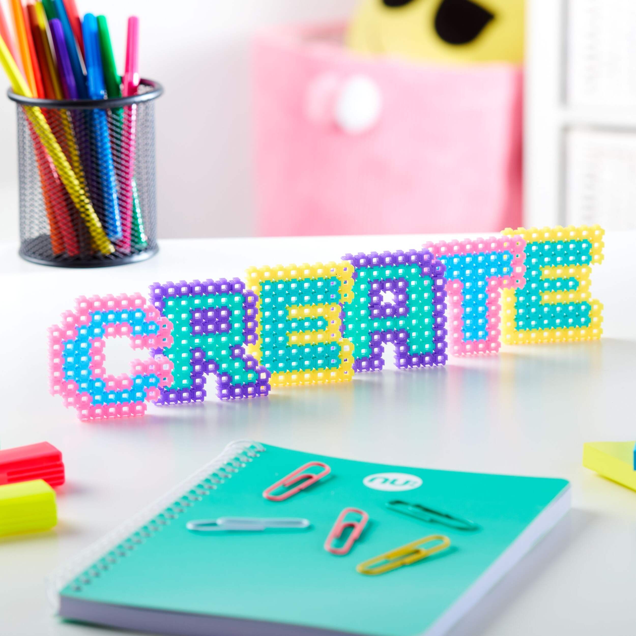 Create endless pixel art designs with this bead-building set