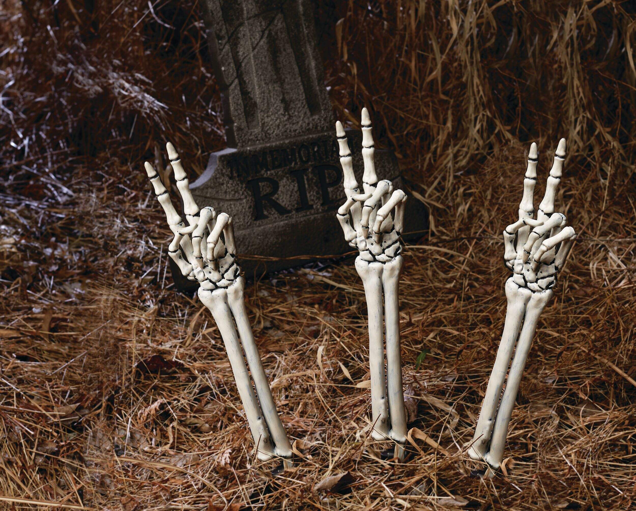 Enhance your Halloween display with the Skeleton Grave Greeting Arms Yard Stakes. These spooky decorations are perfect for creating a fun and eerie atmosphere in your yard. With three unique designs, they add a playful touch to your Halloween setup.