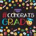 • Graduation emoji napkins are printed with the message "Congrats Grad" surrounded by a variety of emoji faces