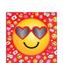 • Durable paper napkins feature a large heart sunglasses emoji printed on them, surrounded by other assorted emojis, hearts, and speech bubbles