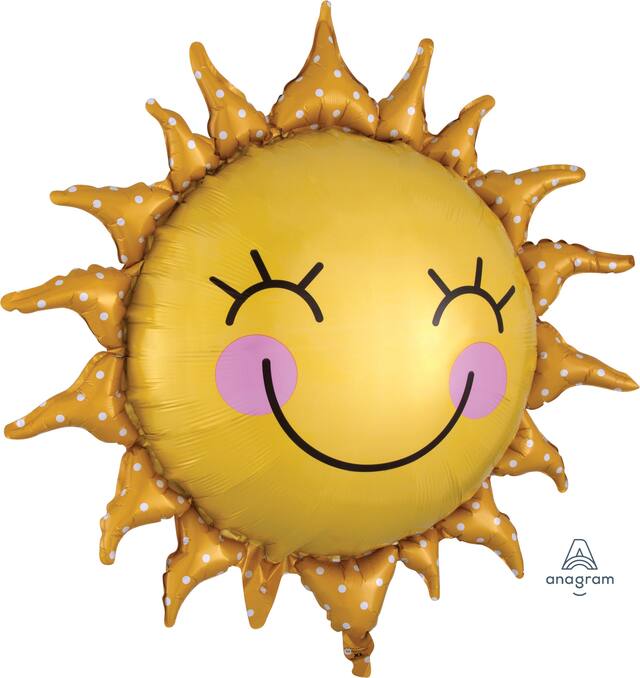 Smiling Sun Balloon comes in bright yellow with an adorable sweet smile and pink cheeks