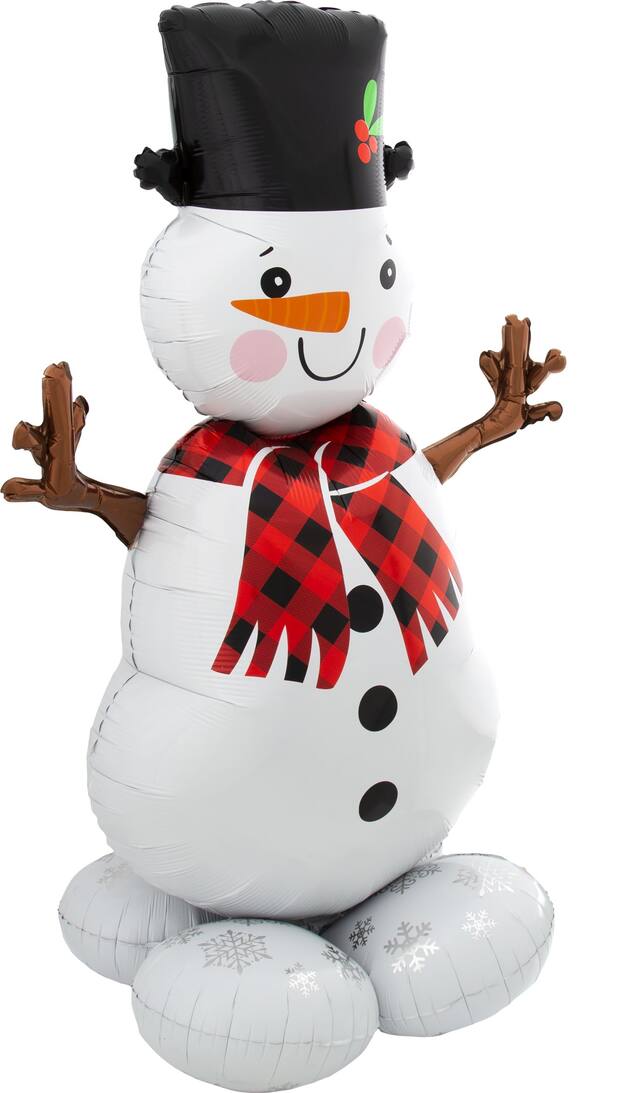 This AirLoonzTM snowman foil balloon is a big and beautiful addition for holiday decor. Simply fill it with air using the included straw for an easy, no-fuss Christmas decoration that towers over 4 feet tall. With its bold snowman shape, it is sure to melt hearts with its cheerful, wintery look at your next gathering. Simply fill with air to make a big, bold statement at your next holiday celebration or party. Helium inflation is not recommended for this product.