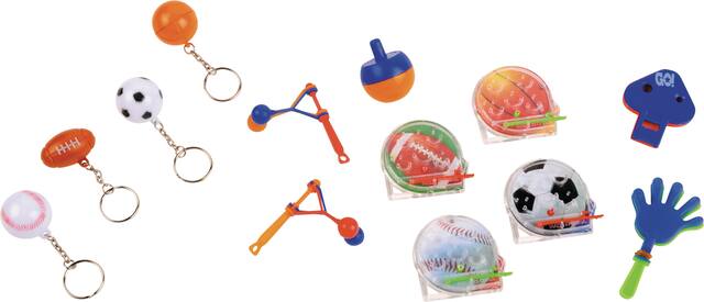 You may be interested in these similar products shown below.Play Ball Party Favours features six different kinds of sports themed party favours, including tops, clappers, whistles, ball keychains, and pinball games