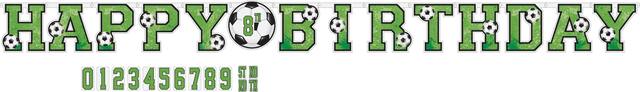 Add an age to this customizable birthday banner with the numbers included and reuse for future soccer-themed birthday parties