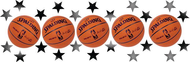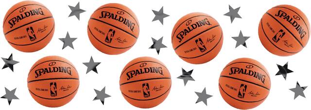 Includes blue and silver foil stars, foil basketballs and cardstock basketball cutouts