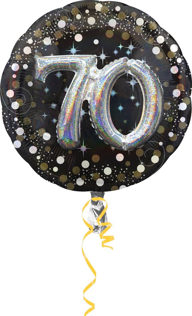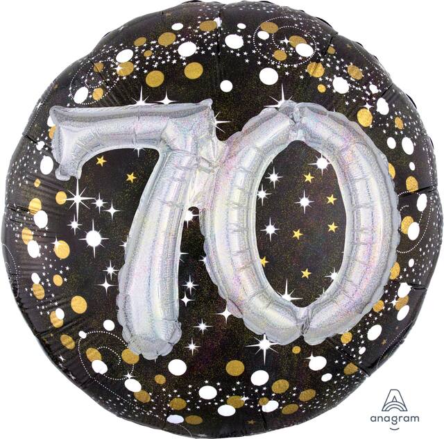 Celebrate the milestone with a touch of sparkle using this 3D Sparkling Celebration 70th Birthday Balloon that is covered in shining stars and dots