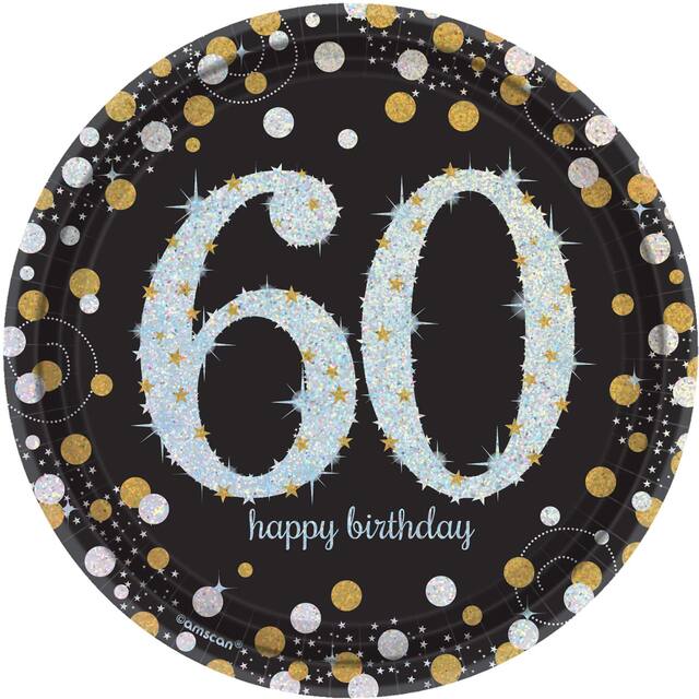 You may be interested in these similar products shown below.These plates are perfect for serving up treats at your 60th birthday celebration. Stack them high with cupcakes, cookies and other sweet snacks for guests of honor marking 6 decades. The prismatic iridescent design will make dessert time a glittering affair, putting everyone in a festive mood. Just add birthday candles and your favorite sweets.